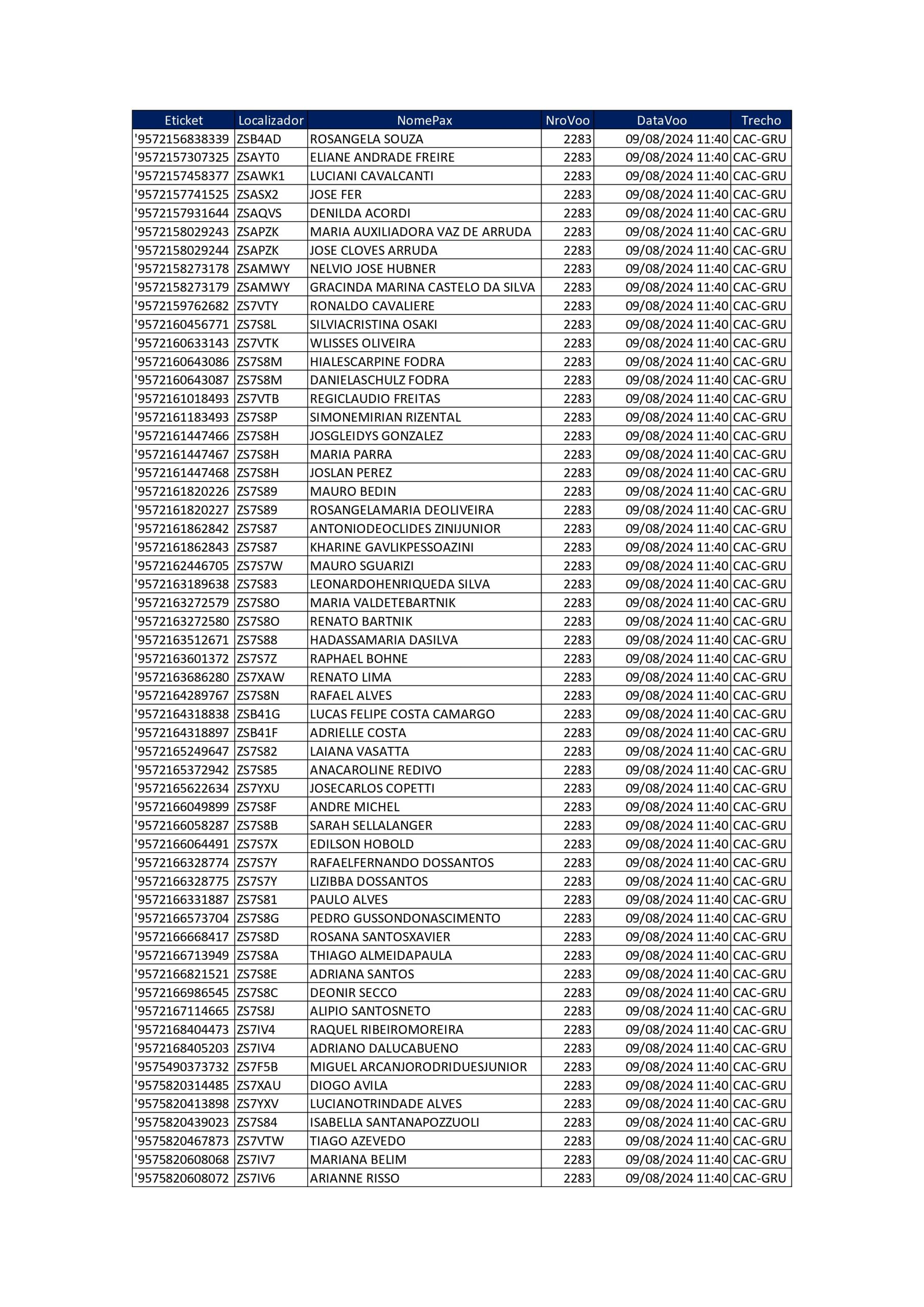 A companhia Aérea Voepass divulgou às 17h45 a lista completa de passageiros que estavam na aeronave que saiu de Cascavel e caiu em Vinhedo (SP)