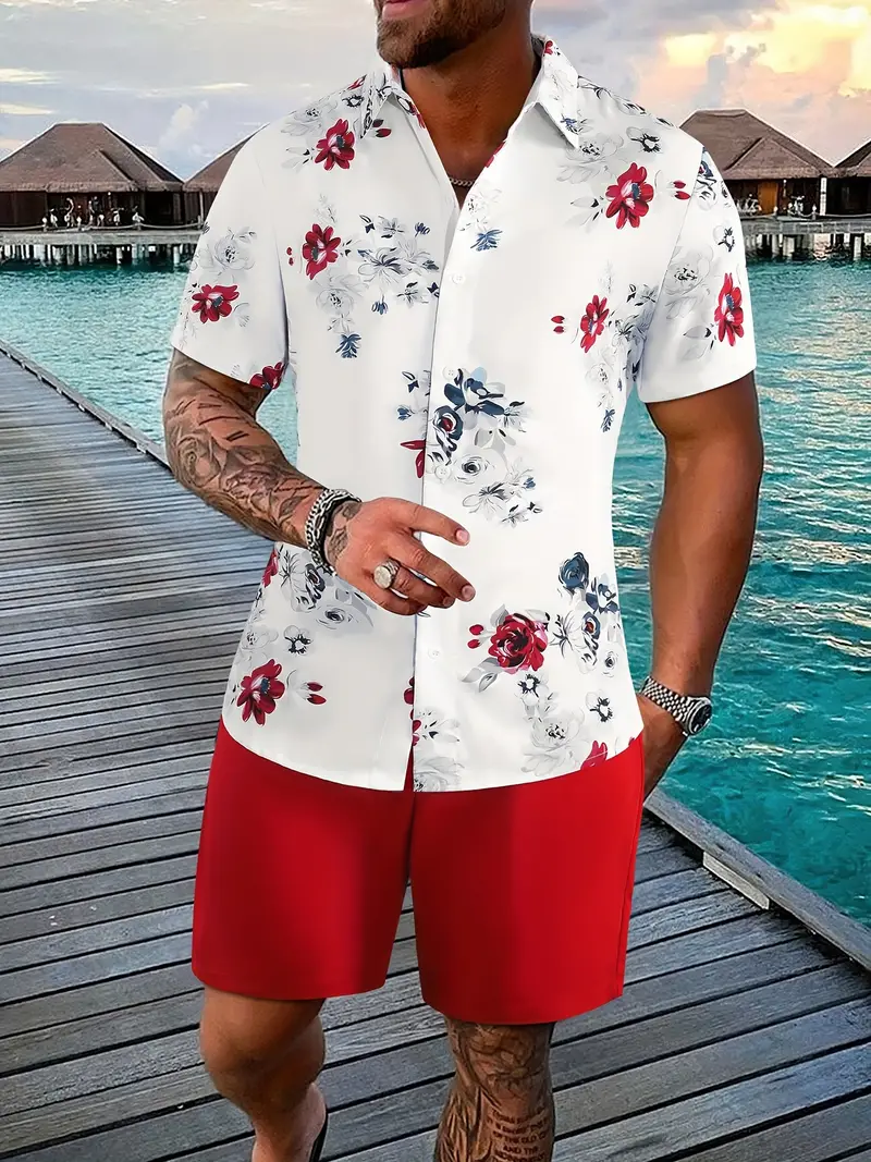 Conjunto de camisa gráfica com estampa floral elegante e bermuda - R$58,08
