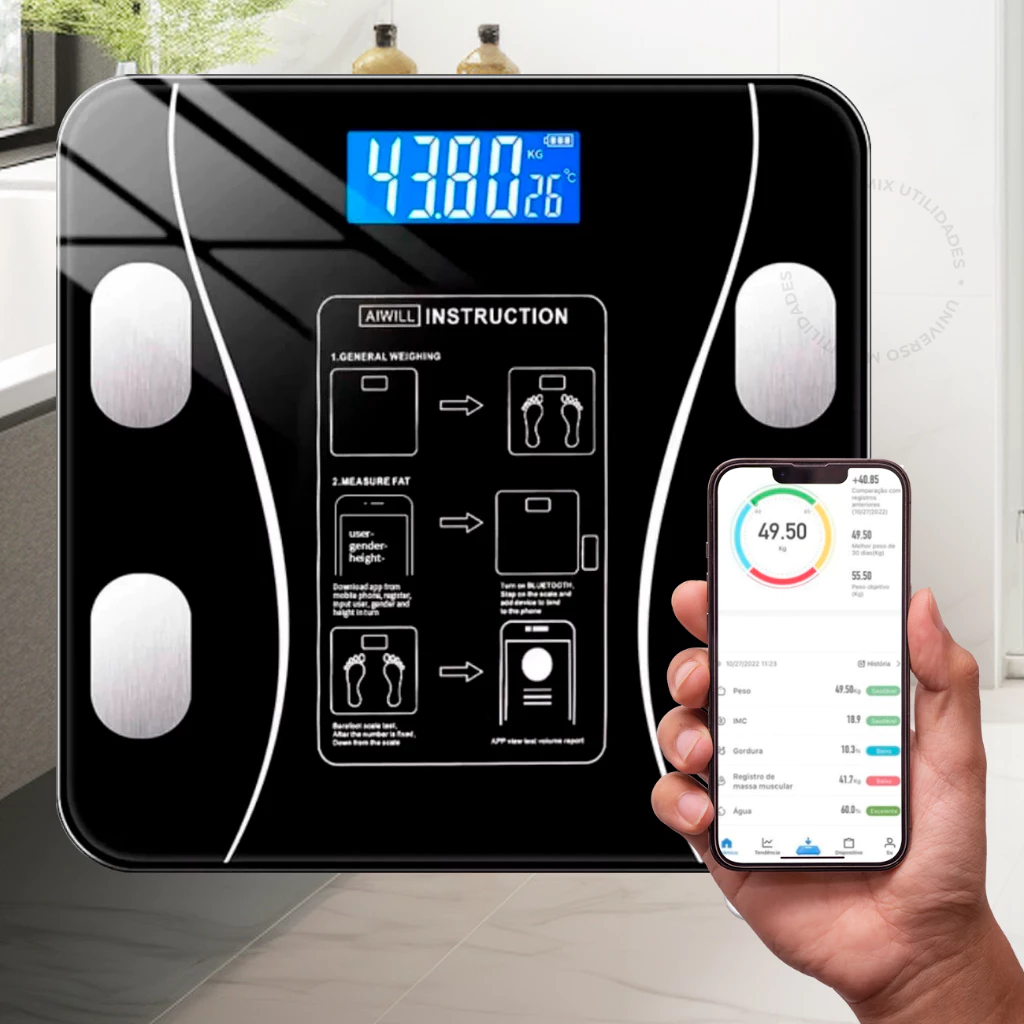 Balança Bioimpedância Digital Profissional Suporta Até 140kg via Bluethooth - R$38,90