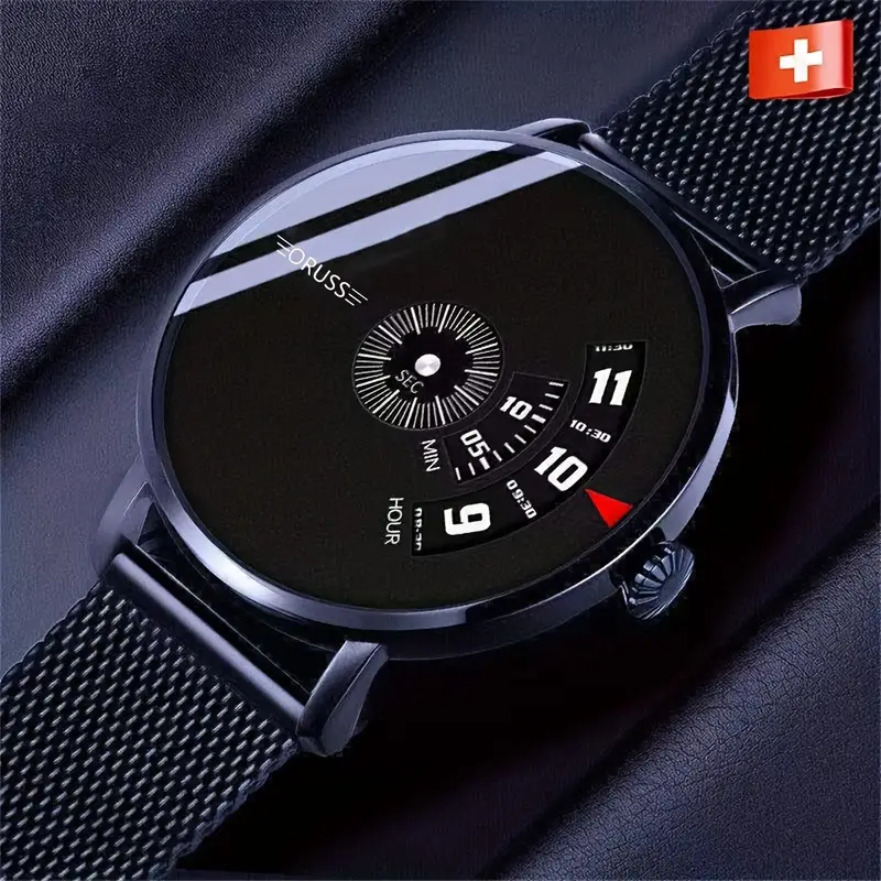 Relógio masculino de alta qualidade à prova d'água, moderno e versátil, com pulseira de malha durável, ideal para esportes - R$48,88