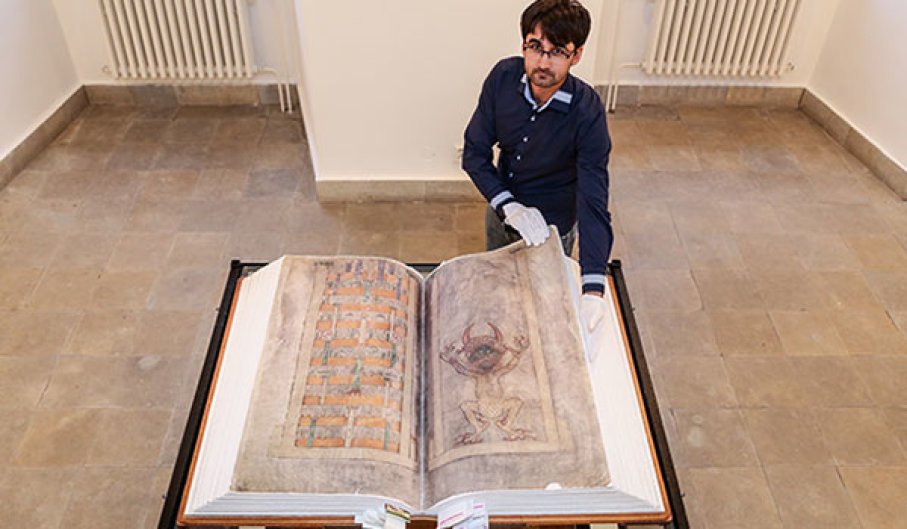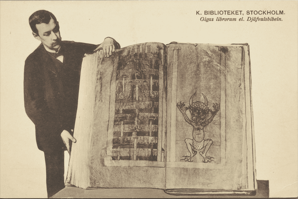 O Codex Gigas, produzido entre 1204 e 1230 no território da atual República Tcheca, é o maior manuscrito medieval conhecido. Escrito em pergaminho feito do couro de mais de 160 animais, suas 310 folhas contêm uma coleção impressionante: o Antigo e Novo Testamento, textos do historiador Flávio Josefo, escritos do teólogo Isidoro de Sevilha, uma crônica da Boêmia chamada Cosmas de Praga, um manual médico do século XII e até rituais de exorcismo e feitiços. Mas o que realmente chama atenção é a ilustração de página inteira do Diabo, com chifres, garras e língua bifurcada, posicionada em contraste com a imagem da Cidade Celestial.