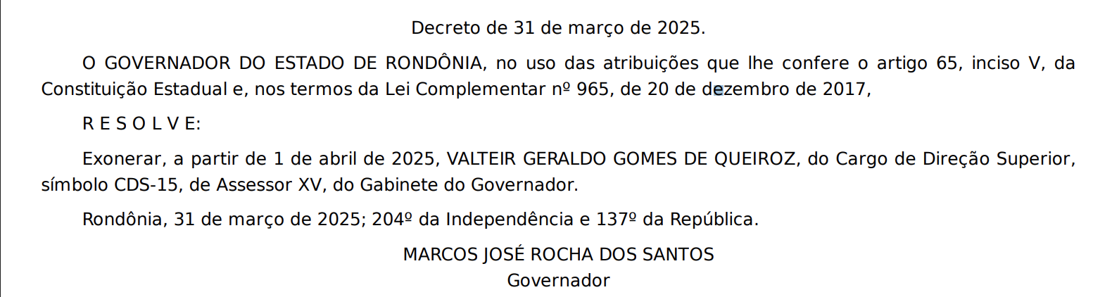 O ex-prefeito de Candeias, Valteir Queiroz, afastado do cargo em 2023 acusado de fraudes em licitações, além da não execução de serviços públicos e ainda a “identificação de ocultação de valores recebidos de forma ilegal para a aquisição de gado e a utilização de laranjas, caracterizando o crime de lavagem de dinheiro", também foi nomeado no governo na última segunda-feira. Ele agora integra o staff do gabinete do governador. A operação que afastou o ex-prefeito foi deflagrada pela Polícia Civil de Rondônia. Essas nomeações são meio que um ‘tapa na cara’ do Judiciário…