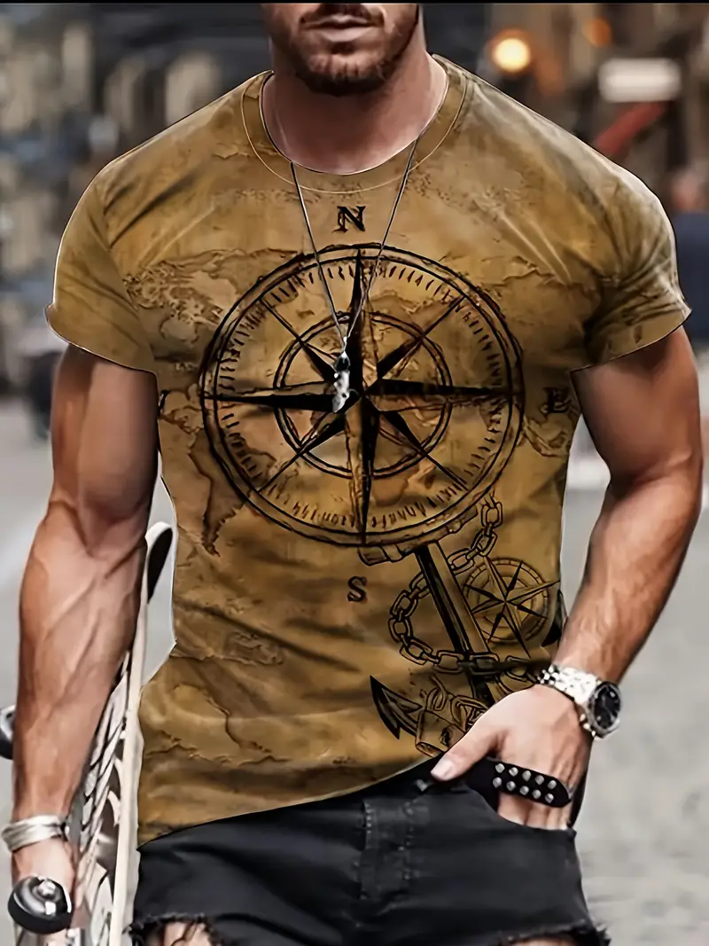 Camiseta Estampada Com Bússola, Estilo Casual, gola redonda e elástica para todas as ocasiões - R$73,03