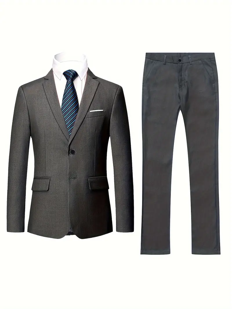Conjunto de traje formal masculino de 2 peças, jaquetas de terno clássicas de manga longa com lapela e calças slim fit, para casamentos, banquetes e ocasiões de negócios - R$329,97 - veja abaixo cores e tamanhos:
