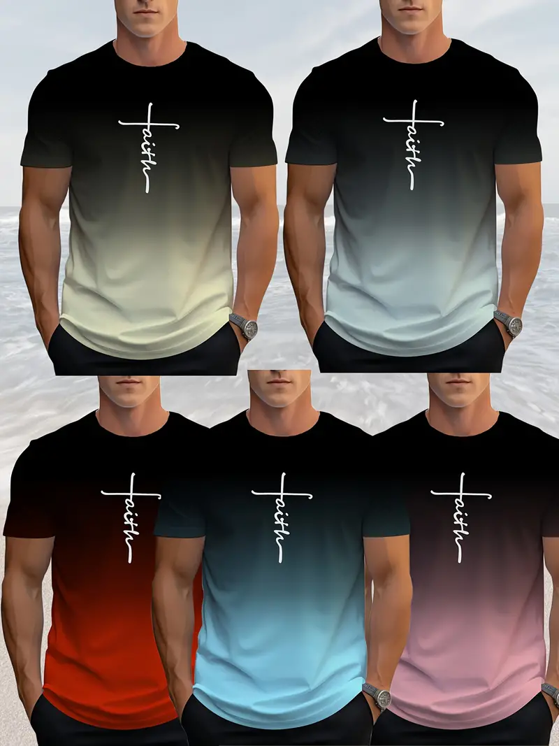 Conjunto de 5 camisetas masculinas de secagem rápida com gradiente - Impressão Digital 3D, Mistura de Poliéster Respirável, Perfeitas para Esportes e Uso Casual - R$261,19 (cada uma custando apenas R$ 52,23)