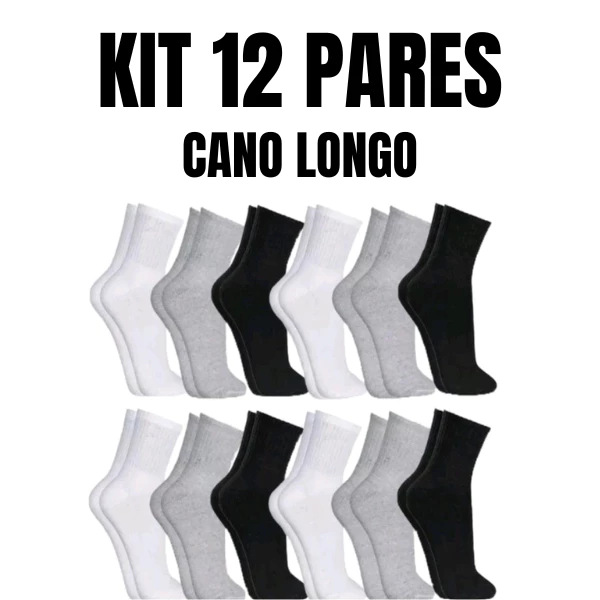 Kit 12 Pares de Meias Cano Alto LISAS masculina e Feminina - R$ 19,90