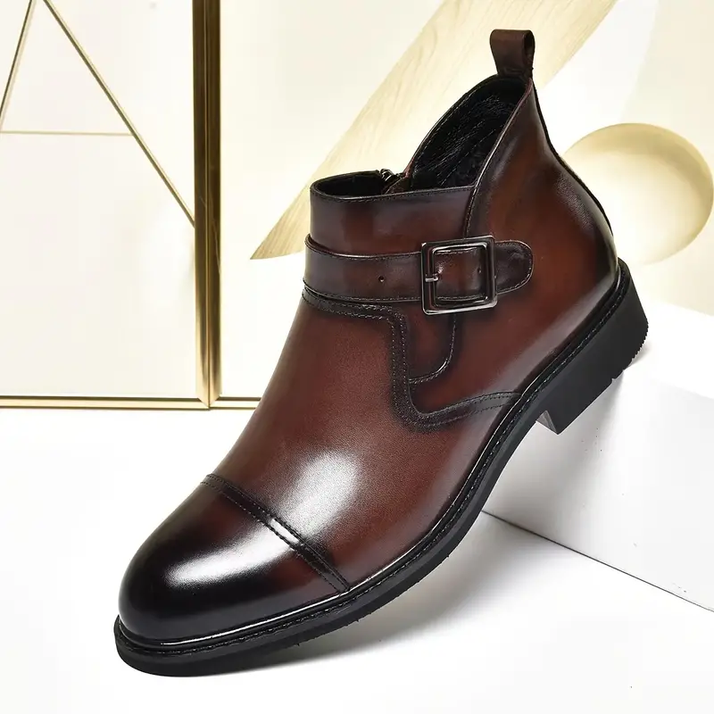 Botas de cano curto com biqueira para homens, botas com zíper lateral resistente ao desgaste e antiderrapante com decoração de fivela para todas as ocasiões. - 4 cores disponíveis - R$323,86