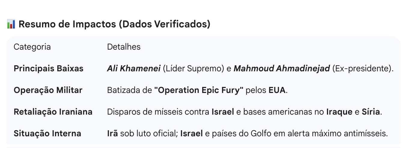 Conselho de Transição: Teerã anunciou a formação de um conselho interino de liderança, composto pelo Presidente Masoud Pezeshkian, o Chefe do Judiciário Gholamhossein Mohseni-Ejei e o Aiatolá Alireza Arafi.