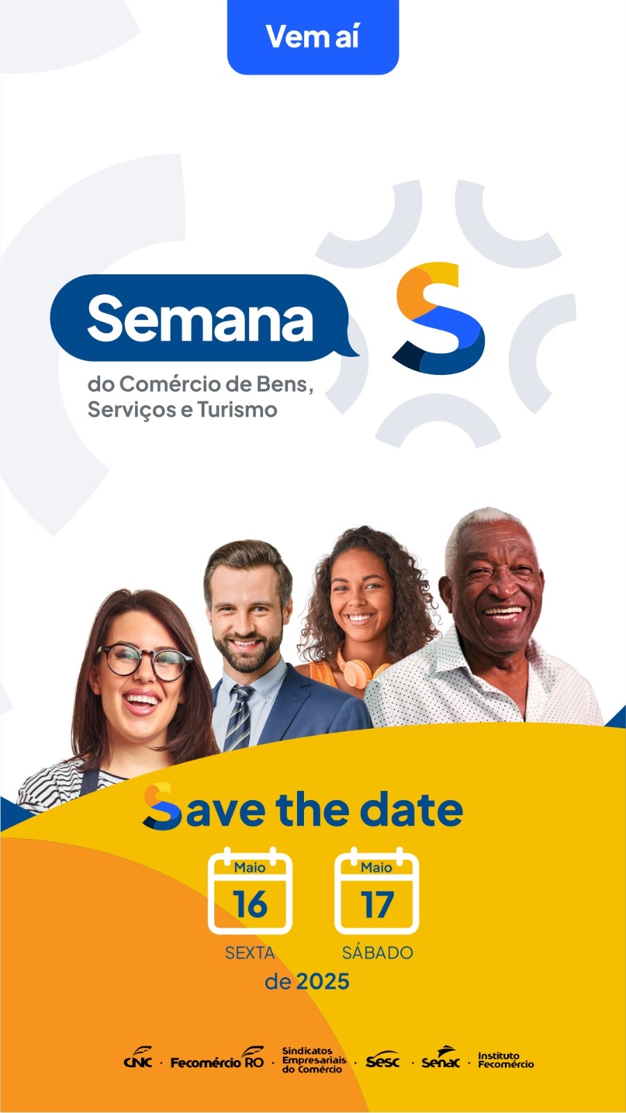 A Confederação Nacional do Comércio de Bens, Serviços e Turismo (CNC), as Federações do Comércio de todos os estados e do Distrito Federal, Sindicatos Empresariais, o Sesc e o Senac promoverão, entre os dias 12 e 17 de maio, a Semana S do Comércio de Bens, Serviços e Turismo.