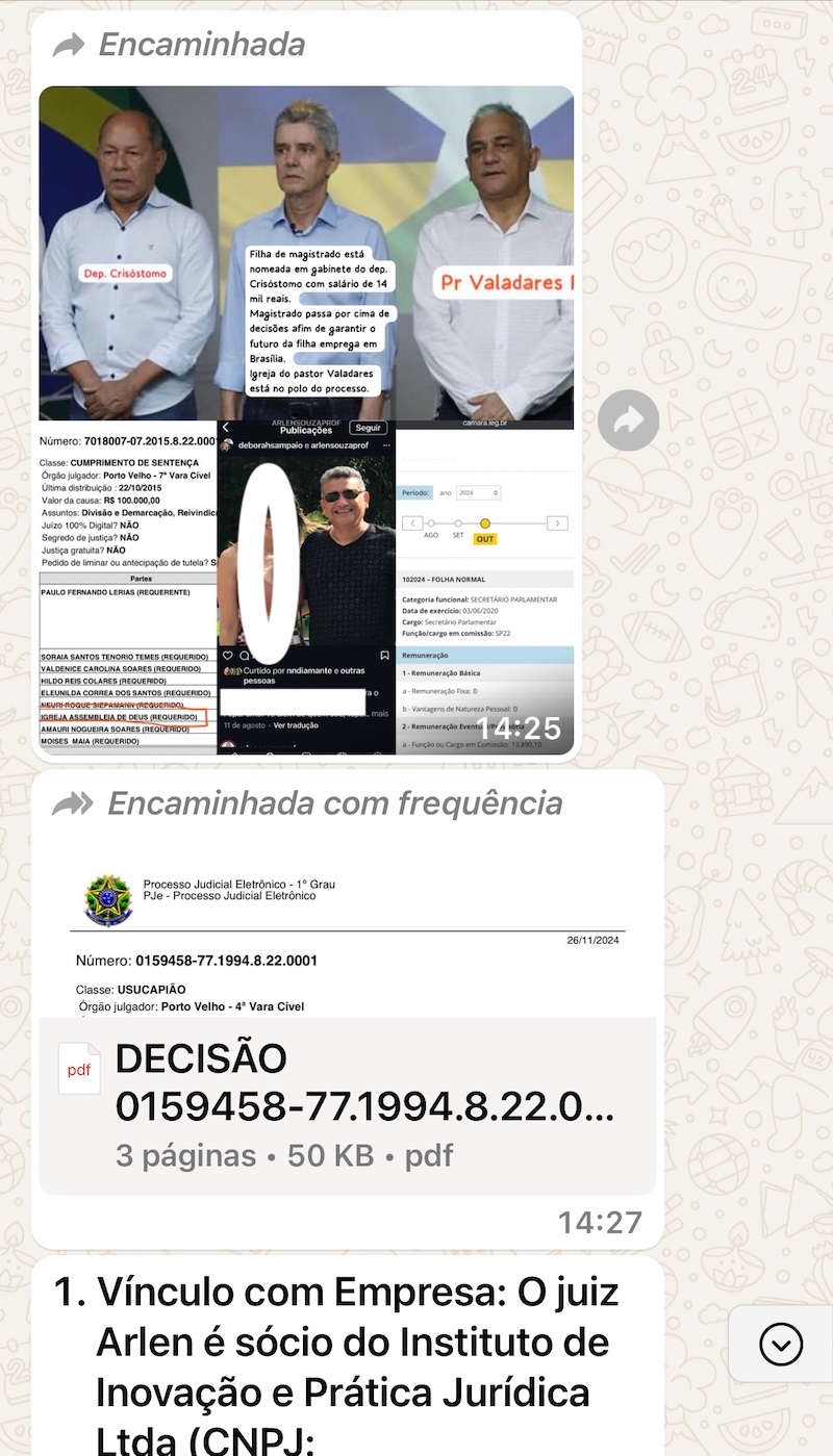 O espaço está aberto para manifestação do magistrado e dos demais citados no texto. Abaixo, prints da mensagem que está circulando em aplicativos: