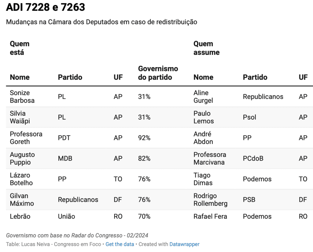 Confira as possíveis substituições em caso de redistribuição das sobras eleitorais: