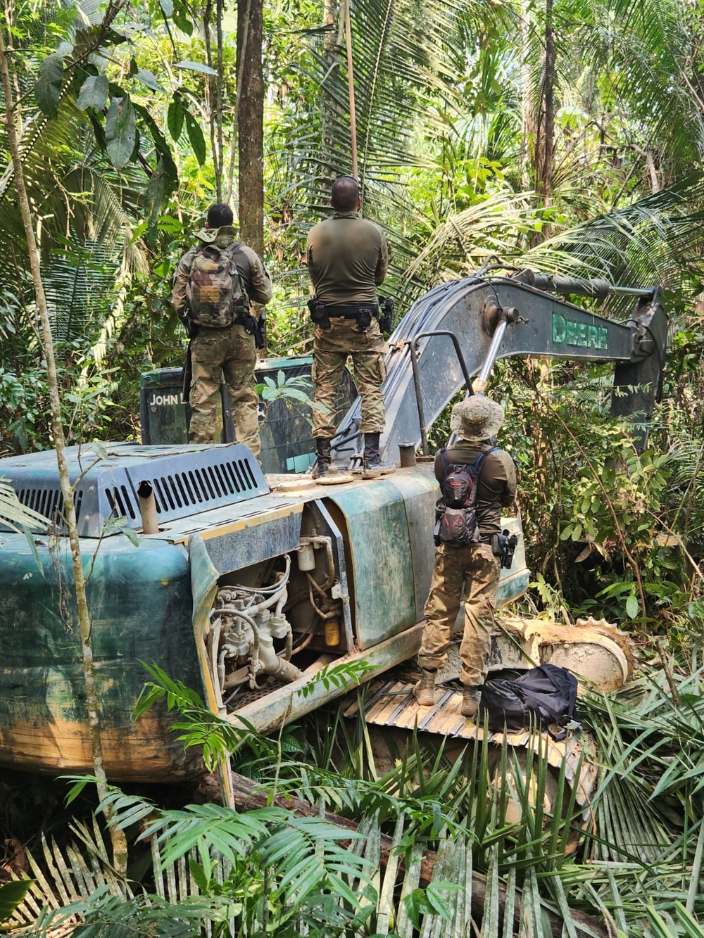 Segundo a PF, com a chegada das equipes de fiscalização, os garimpeiros fugiram, derrubando mais de 20 espécies de árvores pelo caminho com o objetivo de impedir a chegada dos policiais aos equipamentos mais valiosos.