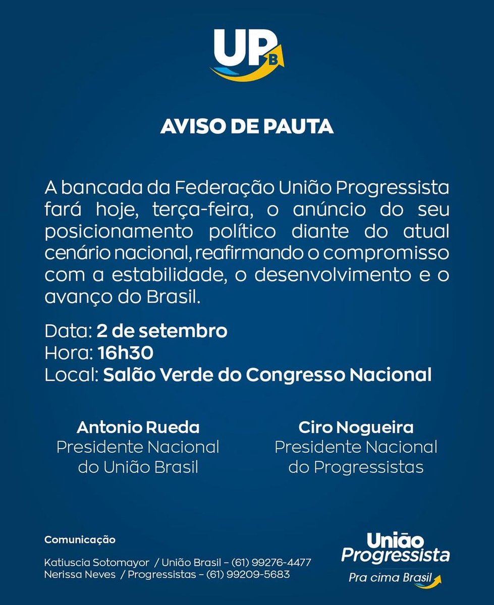 Essa determinação surge em um contexto de realinhamento oposicionista. Pela manhã, Nogueira e Rueda se reuniram com o presidente do Partido Liberal (PL), Valdemar Costa Neto, para alinhar estratégias. Nesse encontro, foi pactuada uma defesa pública conjunta do PP e do União Brasil a projetos legislativos que visam conceder anistia aos condenados pelos atos de 8 de janeiro de 2023, quando apoiadores do ex-presidente Jair Bolsonaro invadiram as sedes dos Três Poderes em Brasília. Essa postura reforça o distanciamento dos partidos do governo Lula e sinaliza uma possível intensificação de pautas conservadoras no Congresso.