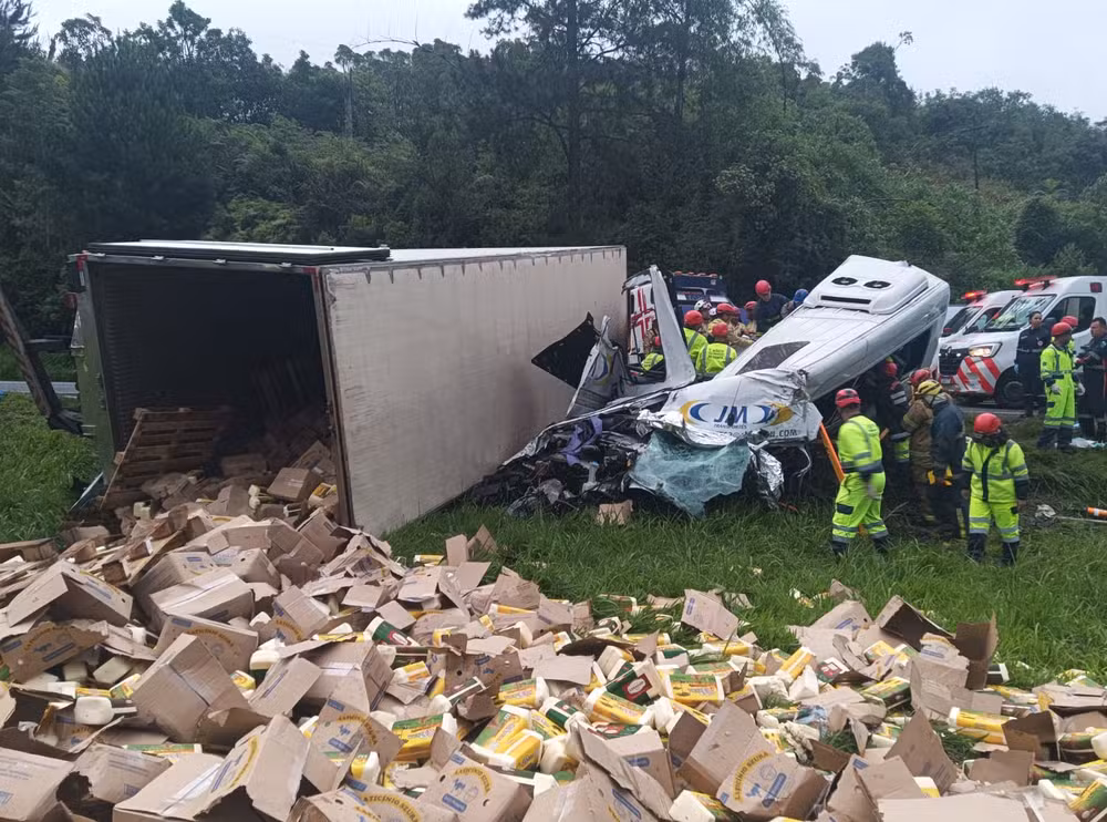 Com o impacto, a carga de queijo transportada pela carreta ficou espalhada pela pista, complicando ainda mais a cena do acidente. Equipes da concessionária responsável pela rodovia, a Arteris Planalto Sul, atuaram no local para atendimento às vítimas, remoção dos veículos e limpeza da via. No sentido São Paulo, o tráfego foi normalizado rapidamente, mas no sentido Curitiba, apenas uma pista foi liberada, sem previsão inicial para a liberação total.