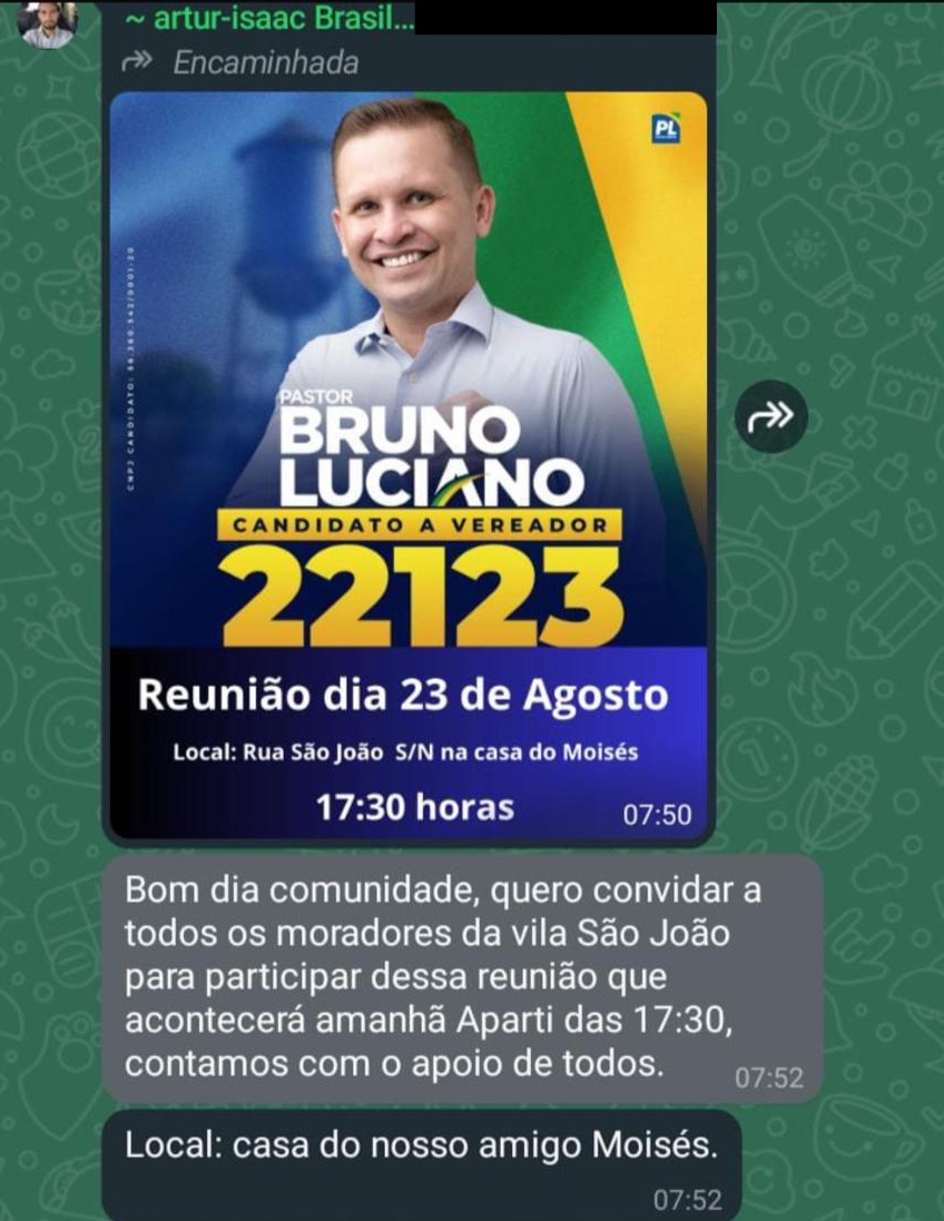O vereador nega que ‘esteja incitando’ os moradores, mas reuniões tem sido marcadas por seus assessores para ‘tratar da regularização', conforme mostram ‘prints’: