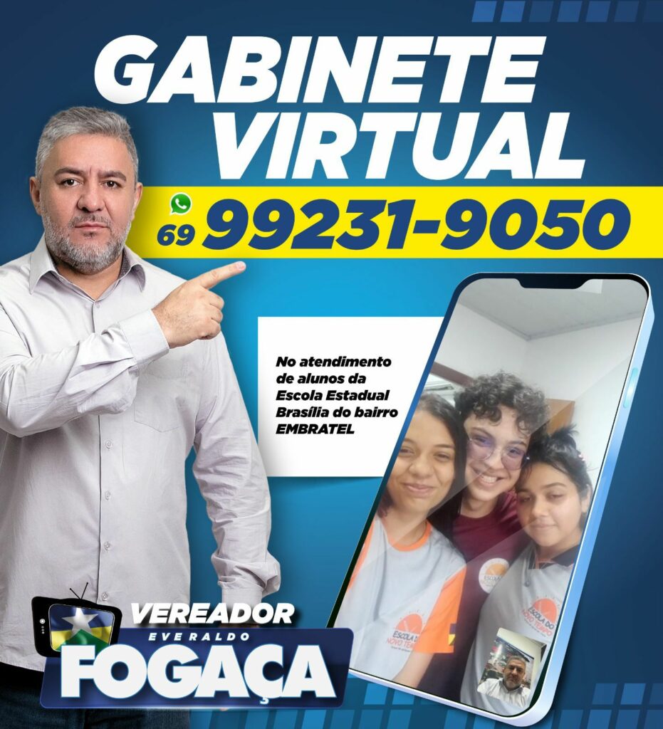 O vereador Everaldo Fogaça, do partido Republicamos, está ampliando seus atendimentos à população de Porto Velho por meio do seu Gabinete Virtual. Com o objetivo de agilizar as demandas da comunidade, o parlamentar está disponibilizando um canal direto de contato via WhatsApp, pelo número 69-99231-9050.