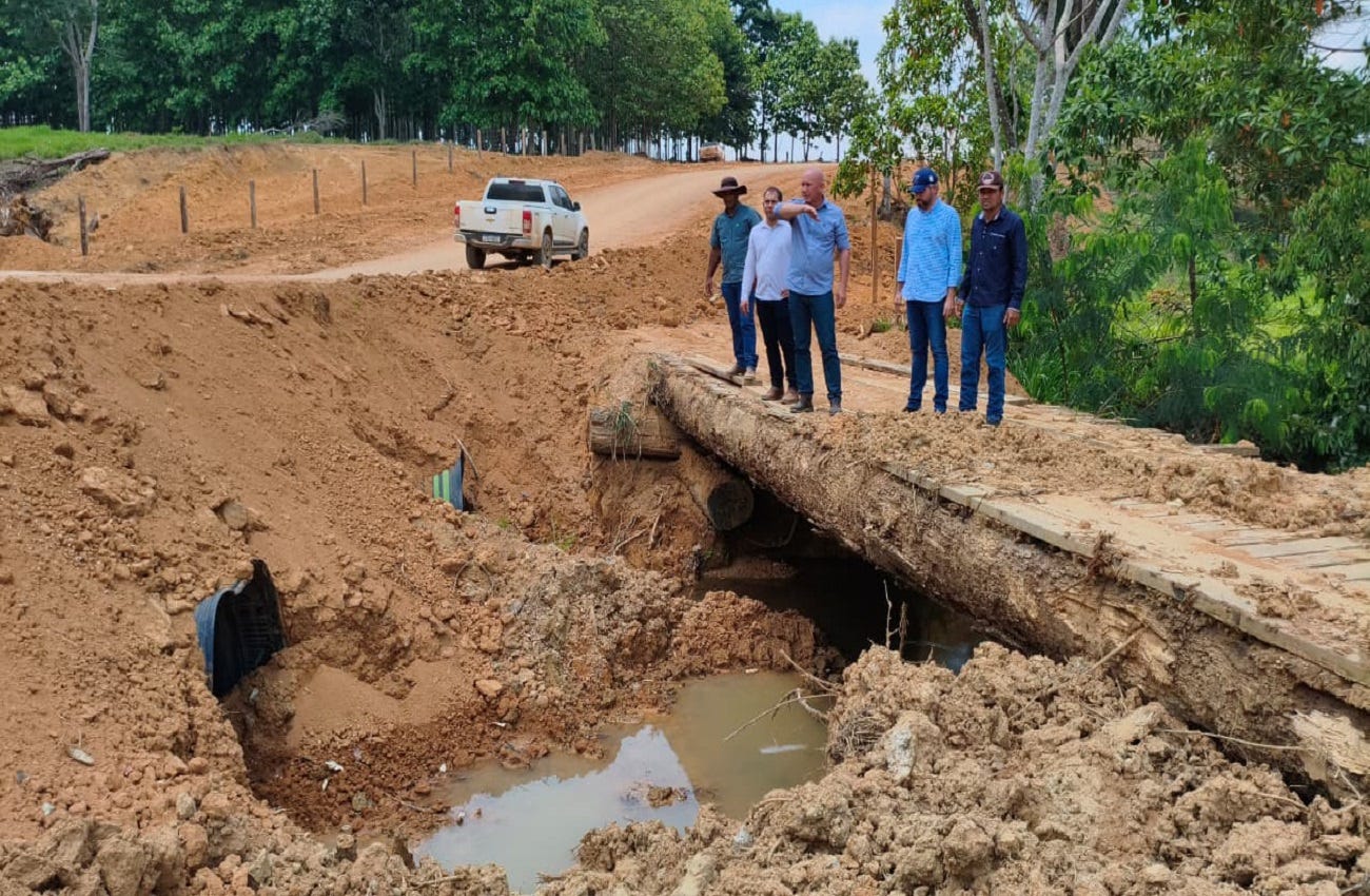 Ezequiel Neiva vistoria substituição de pontes de madeira por tubos PEAD em Nova Mamoré