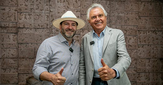 Governador Ronaldo Caiado é recepcionado pelo presidente Alex Redano na 12ª Rondônia Rural Show em Ji-Paraná