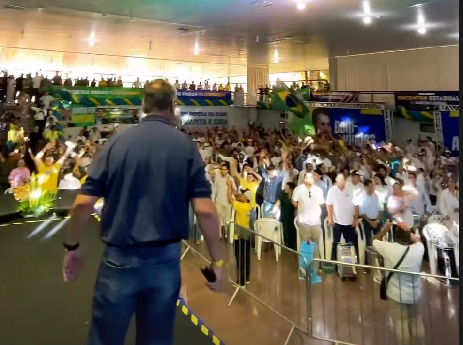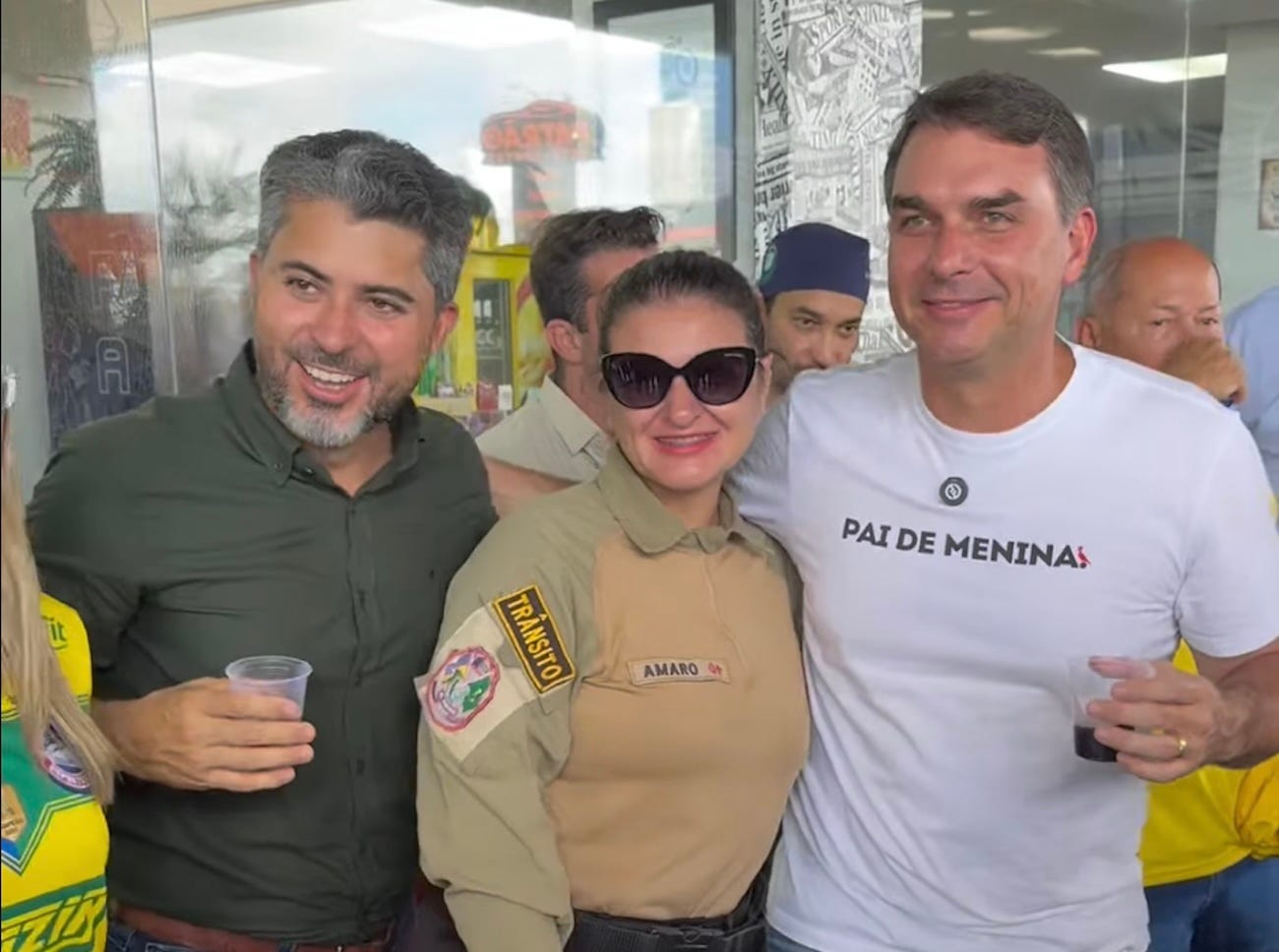 • O evento contou com a presença estratégica do senador Flávio Bolsonaro (PL-RJ), simbolizando o aval da família Bolsonaro.