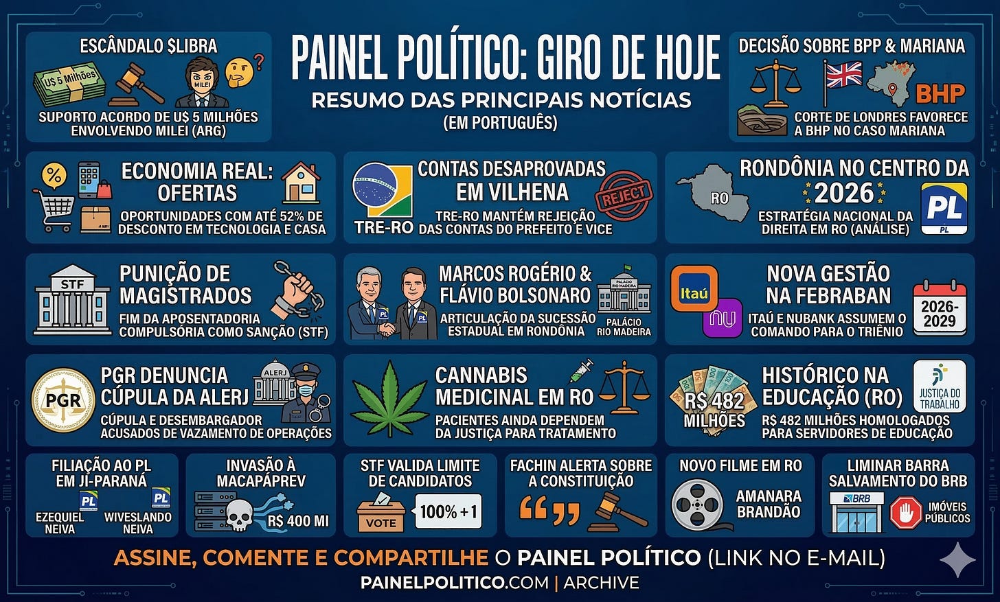 O que você precisa saber hoje: A suposta ligação de Milei com o token $LIBRA, a nova cara da direita em RO para 2026 e decisões históricas no Judiciário